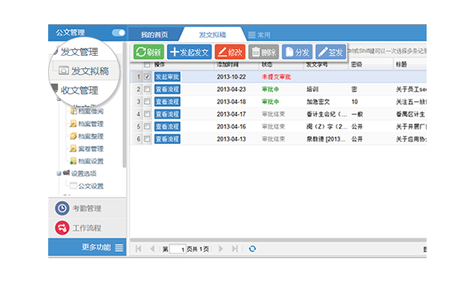 流转过程中严格进行审批控制,系统对公文的流转过程进行监督,满足不同发文管理