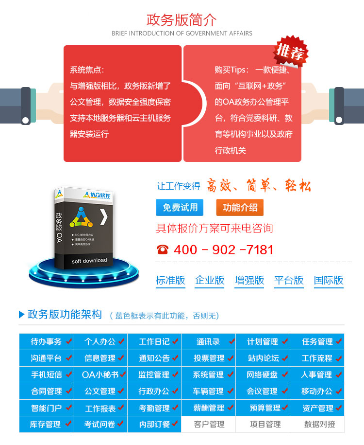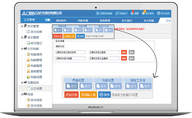 实现政府机关内部档案的分类管理,系统中的数据可以根据要求进行归档处理,归档后的操作需要作档案借阅后才可处理